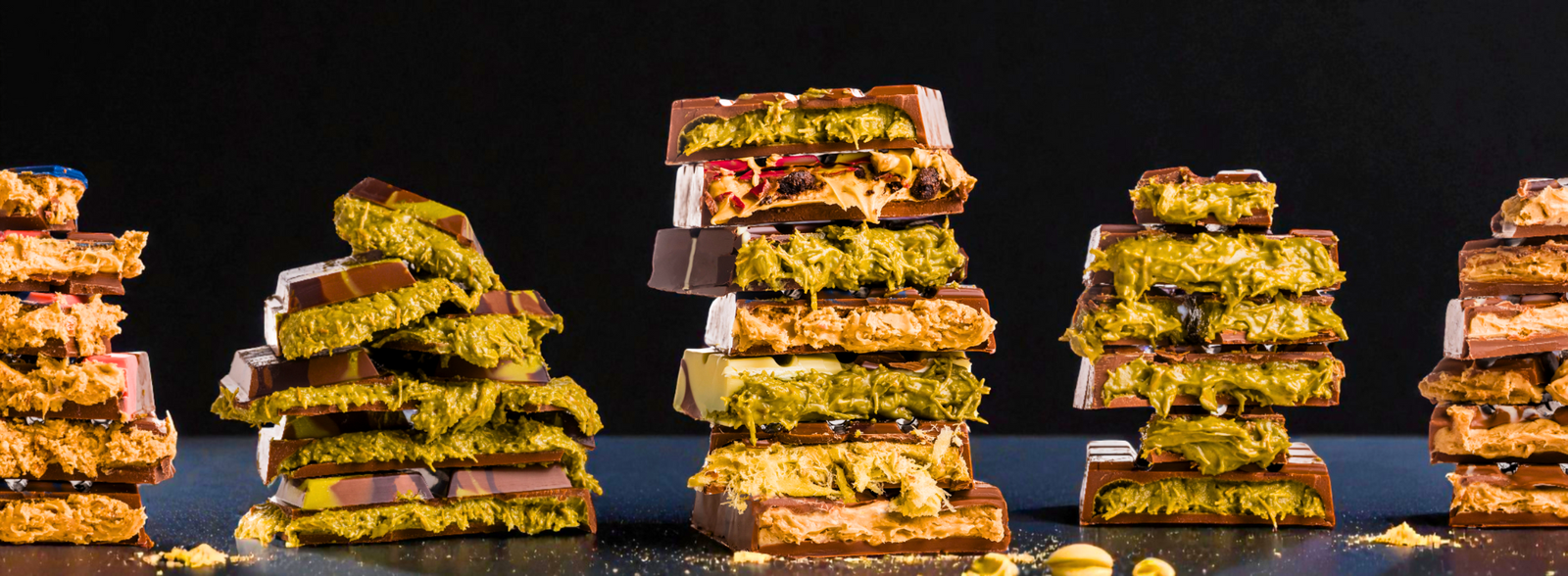 Onze aanpak. Terwijl andere merken de makkelijke weg kozen, gingen wij tot het uiterste. We vlogen naar België en werkten samen met chocolademeesters. Handgeselecteerde Siciliaanse pistachenoten. Authentieke Midden-Oosterse Knafeh. 100% pure ingrediënten.